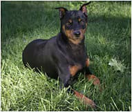 El Pinscher Miniatura no es en absoluto un Doberman Pinscher miniatura. Aunque comparten la misma patria, Alemania, la relación termina ahí. El Pinscher Miniatura es una raza única que es más que la suma de sus partes, probablemente resultado del cruce entre un pequeño Terrier de pelo corto, un Dachshund y un Galgo Italiano. Perros parecidos a ellos fueron representados en el arte ya en el siglo XVII, pero no fue hasta el siglo XIX que se desarrollaron definitivamente en una raza distinta, el "reh pinscher" (reh porque se parecía al ciervo reh alemán, y pinscher significa terrier). Durante los primeros tiempos de las exposiciones caninas, los criadores casi arruinaron al Pinscher Miniatura al criarlo para un tamaño pequeño en detrimento de todos los demás criterios. Para 1900, los criadores habían corregido su rumbo y el Pinscher Miniatura nunca ha mirado atrás.